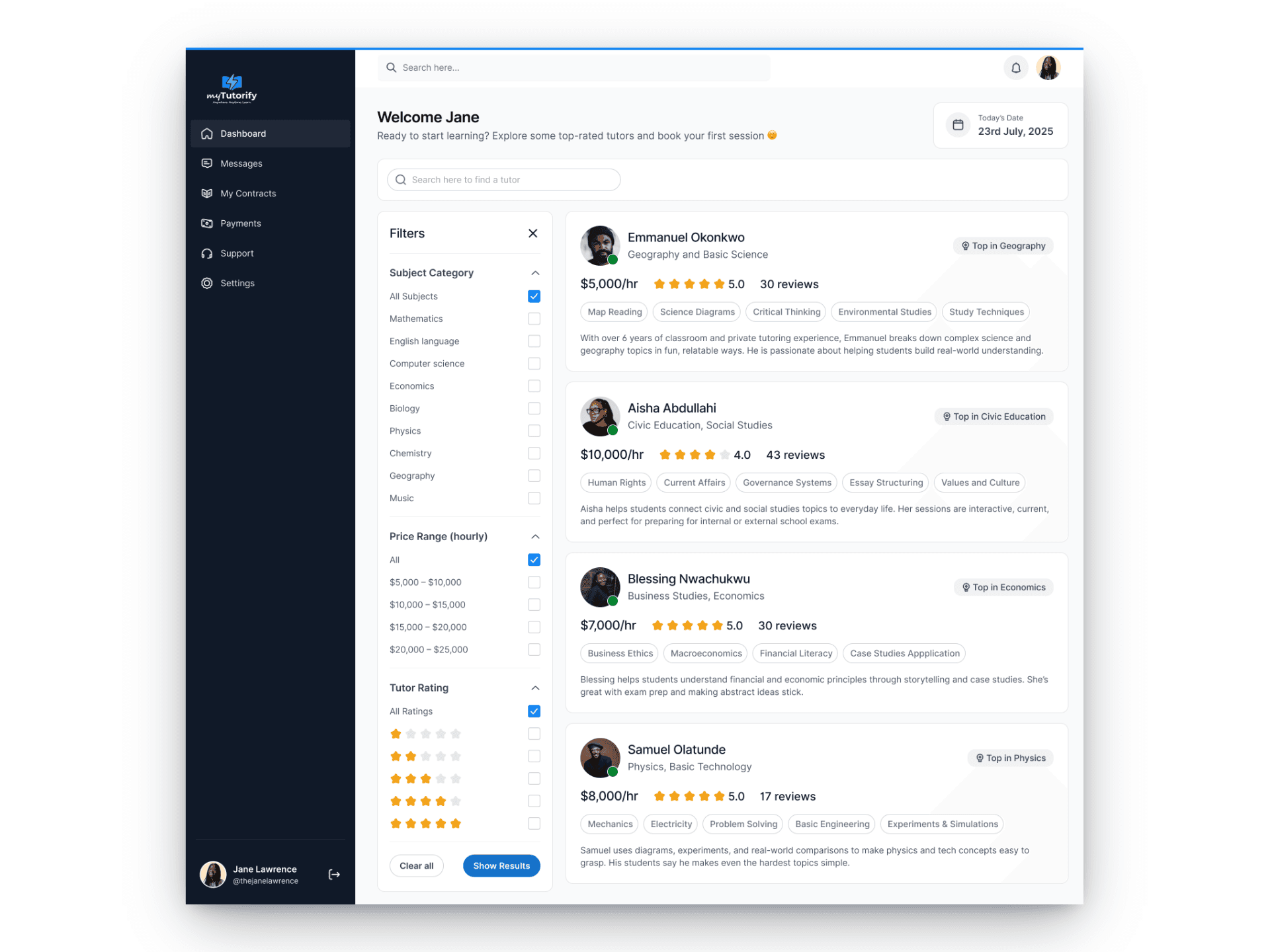 Tutorify makes it simple to discover qualified tutors by subject, teaching style, and availability, so students can make confident choices.